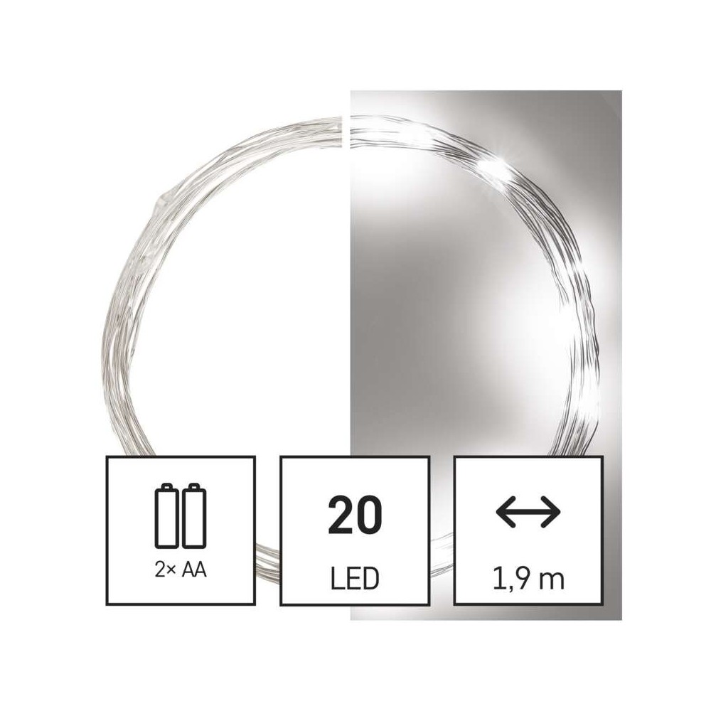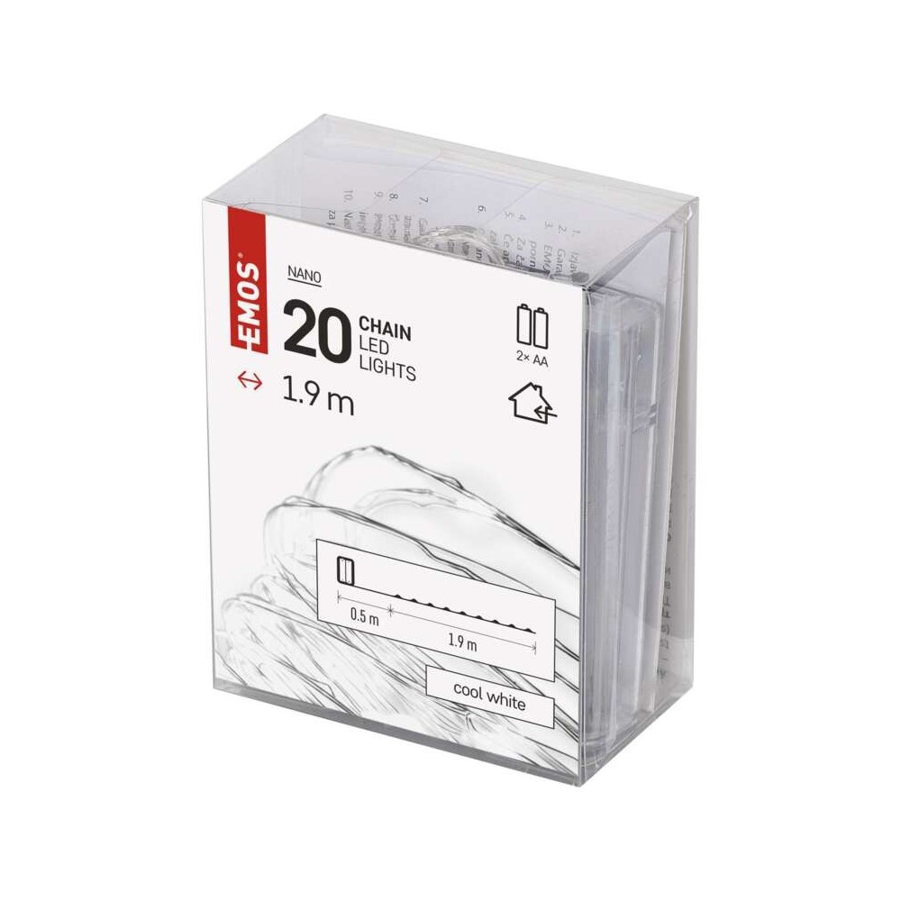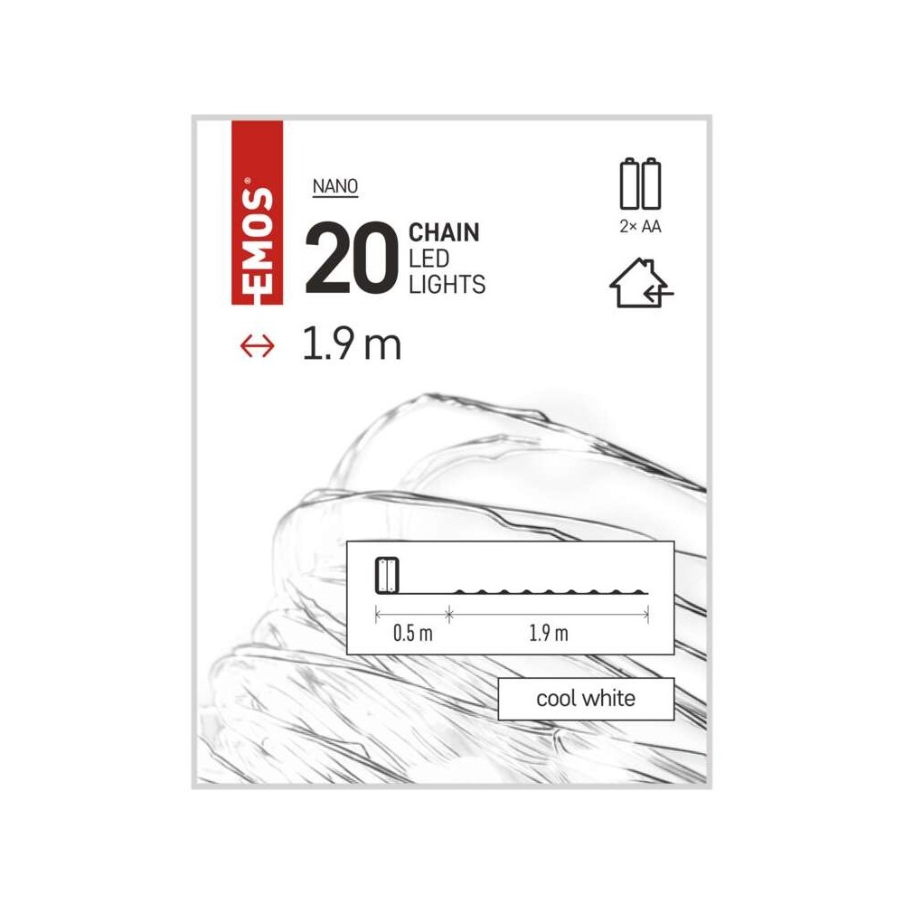 Catena LED Batteria Nano: 20 LED Bianco Freddo, Timer, 1,9m | EMOS D3AC07