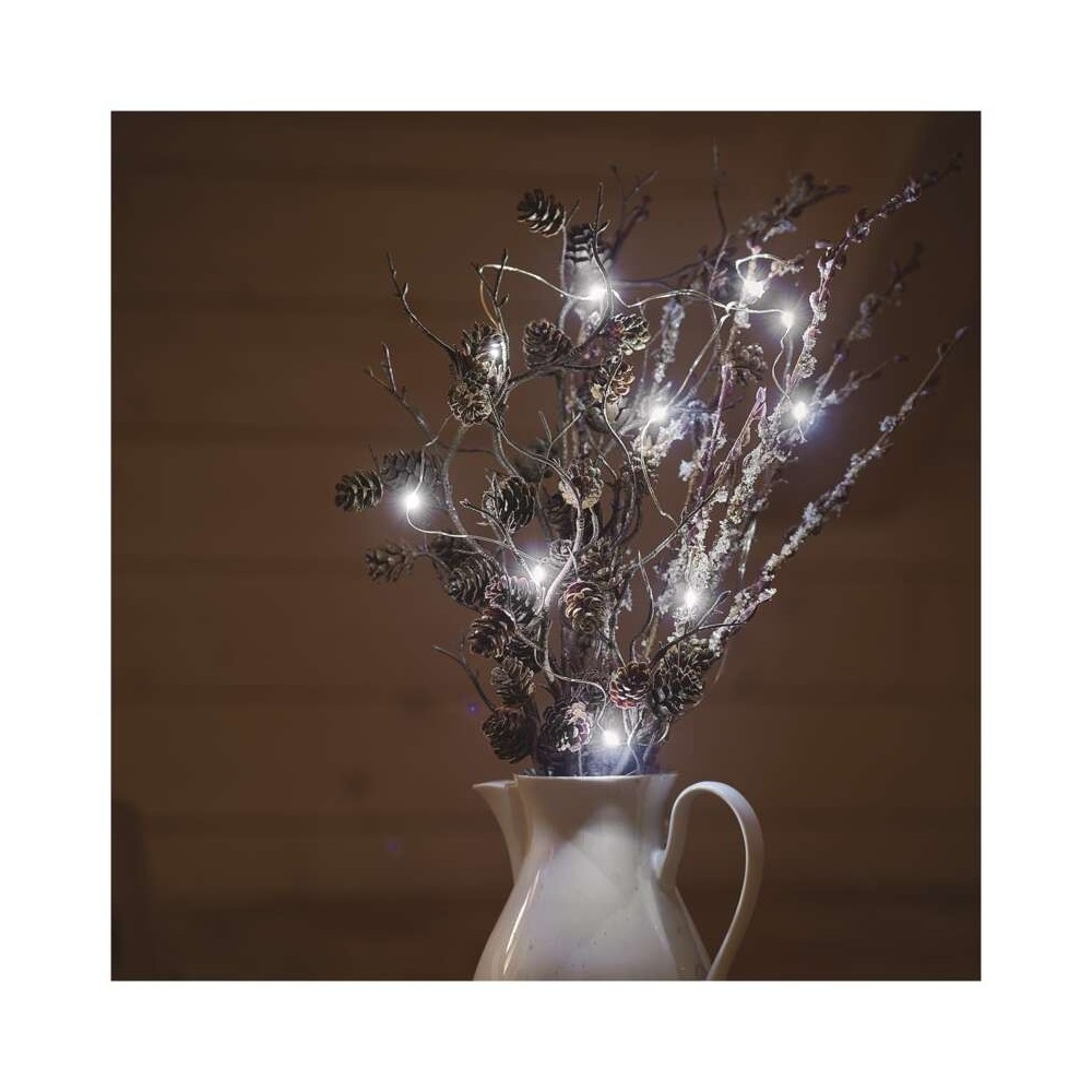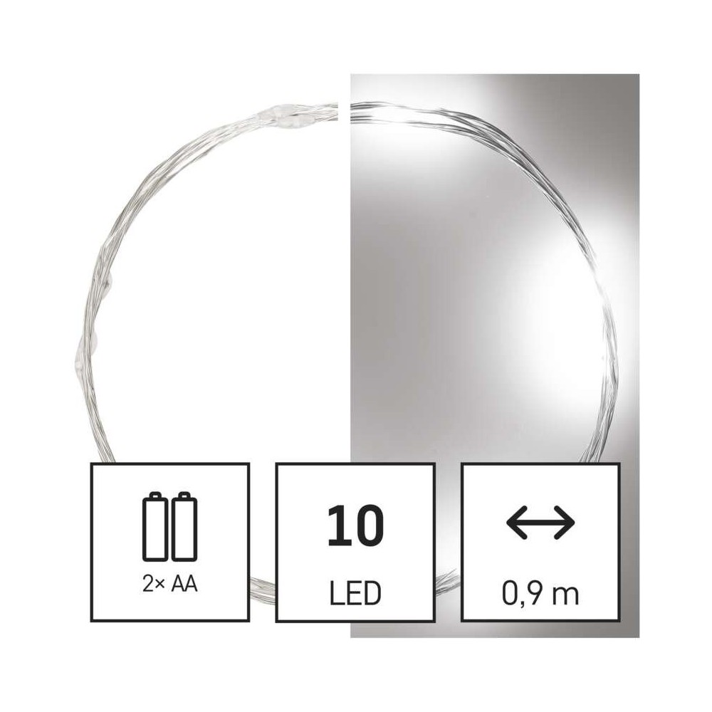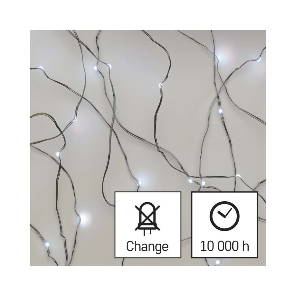 Le catene natalizie NANO alimentate a batteria sono una scelta chiara per creare un'atmosfera accogliente in varie occasioni festive in cui non si vuole che l'impressione generale della decorazione venga disturbata dal cavo di alimentazione. Grazie al filo sottile, risaltano magnificamente le parti leggere della catena, che possono essere utilizzate per decorare varie parti degli interni, inclusa la lavagna festosa . Il filo ultrasottile può essere piegato secondo le tue preferenze, così puoi avvolgere le luci attorno a una corona dell'Avvento o alla tua statuetta preferita sullo scaffale. La catena fornirà una decorazione elegante e un'illuminazione piacevole anche se posizionata in un bicchiere o in una lanterna . La catena NANO di Natale è dotata di un vano batteria con interruttore e timer , che garantisce che all'accensione la catena si illuminerà per 6 ore , per poi spegnersi e riaccendersi dopo 18 ore .