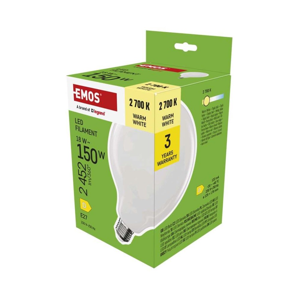 Lampadina LED Globo G125 a Filamento E27 18W (150W) 2452lm 2700K Vetro Opale | Emos ZF2D82