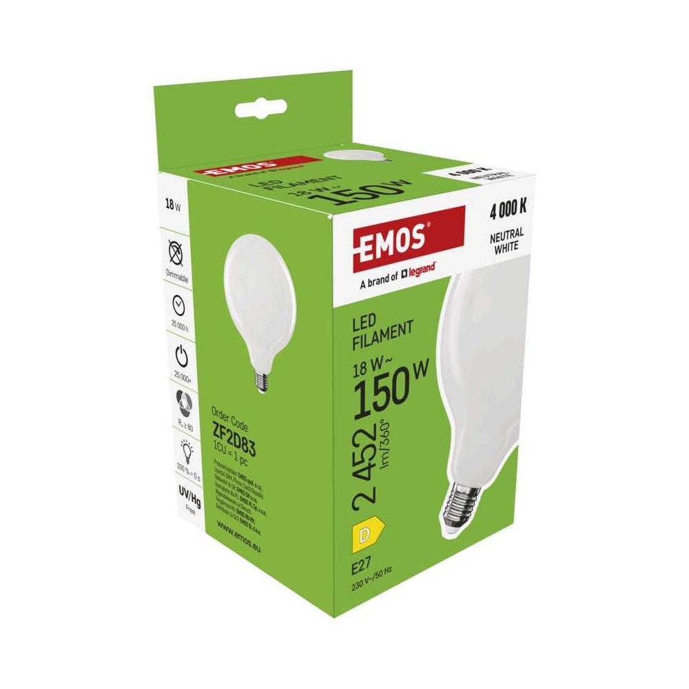 Lampadina LED Globo G125 a Filamento E27 18W (150W) 2452lm 4000K Vetro Opale | Emos ZF2D83