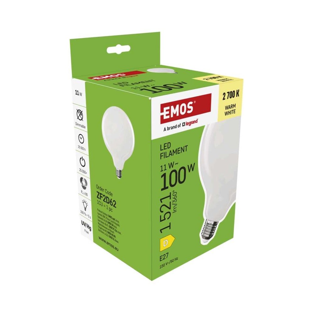 Lampadina LED Globo G125 a Filamento E27 11W (100W) 1521lm 2700K Vetro Opale | Emos ZF2D62