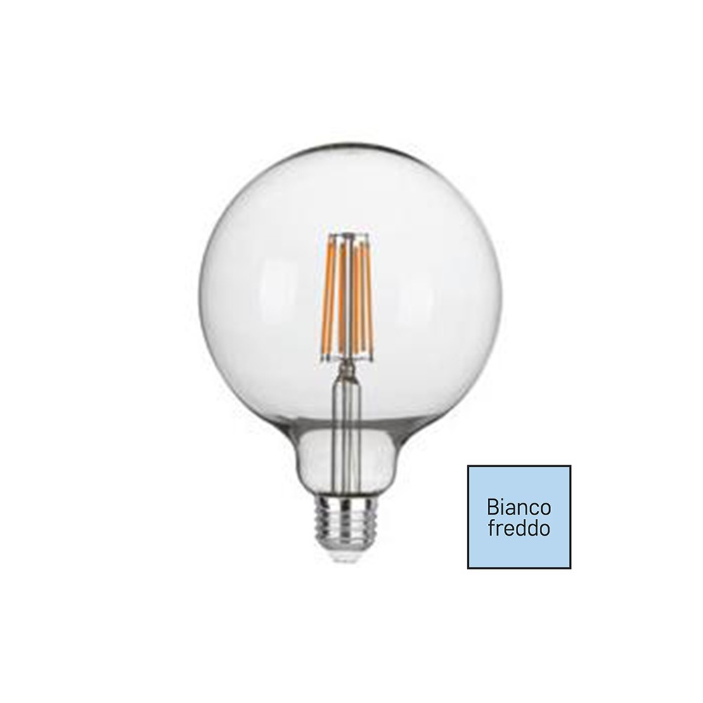 Lampadina LED Globo G125 8W 6500K 1600lm Vetro Trasparente E27 | LUXA-E27G125-8F