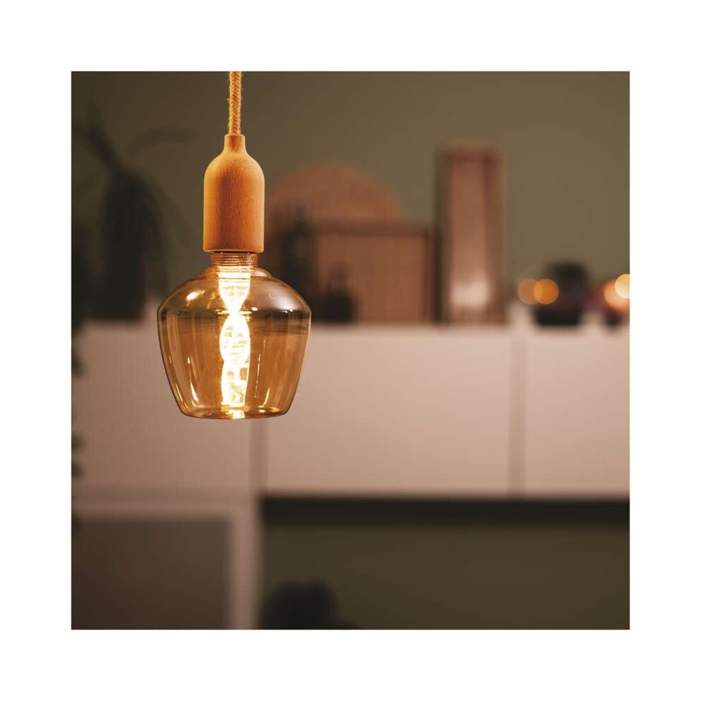 Il vetro ambra dorato trasparente della lampadina LED decorativa E27 è un capolavoro estetico e funzionale. Anche spenta cattura sguardi e complimenti degli ospiti. La tonalità ambrata non è un rivestimento economico che si scrosta: è vetro colorato in massa che mantiene la bellezza inalterata per 25.000 ore.