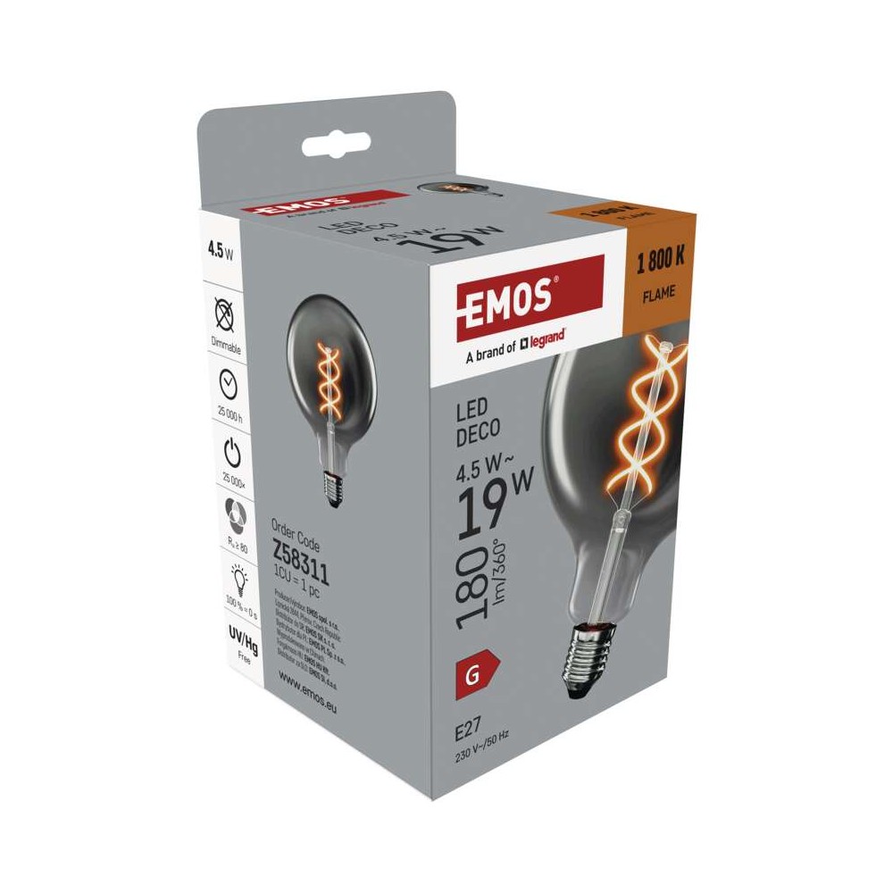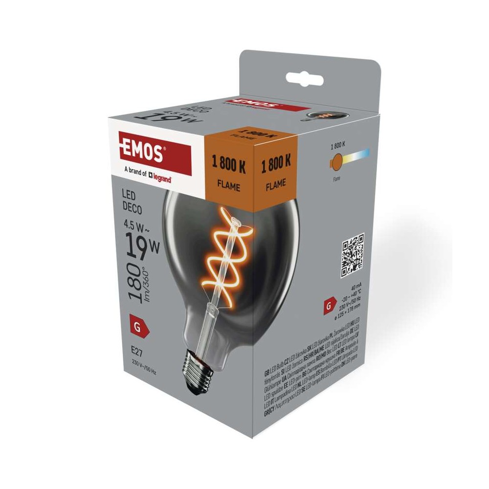 Aggiungi al carrello e ricevi lampadina LED decorativa E27 EMOS G125 Smoked DNA 24-48 ore spedizione tracciata. Reso gratuito 14 giorni, garanzia 2 anni EMOS certificata europea Legrand.