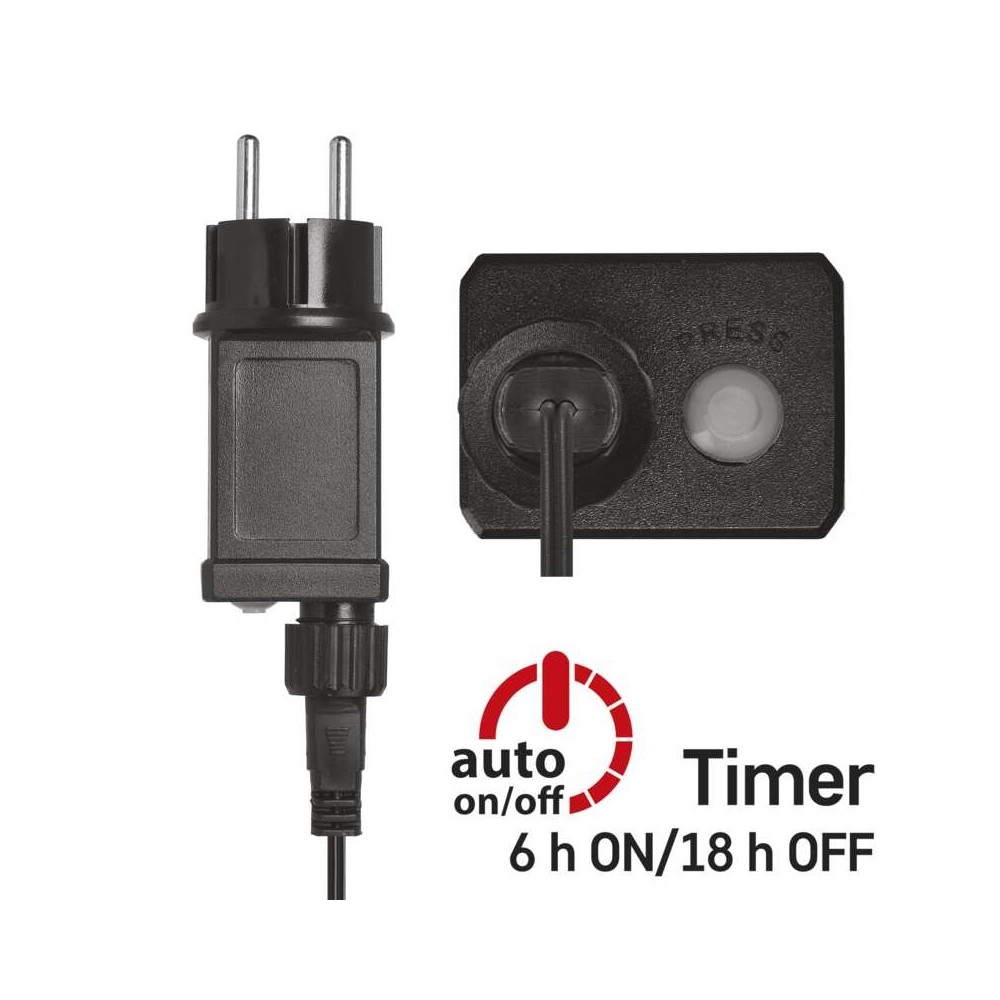 Semplicissimo. Colleghi la spina 230V, aspetti l'ora desiderata (es. 17:30 a dicembre), premi il pulsante timer sul controller. Da lì si accenderà ogni giorno alle 17:30 e si spegnerà dopo 6 ore. Per cambiare: stacca la spina qualche secondo, riaccendi al nuovo orario premendo timer.