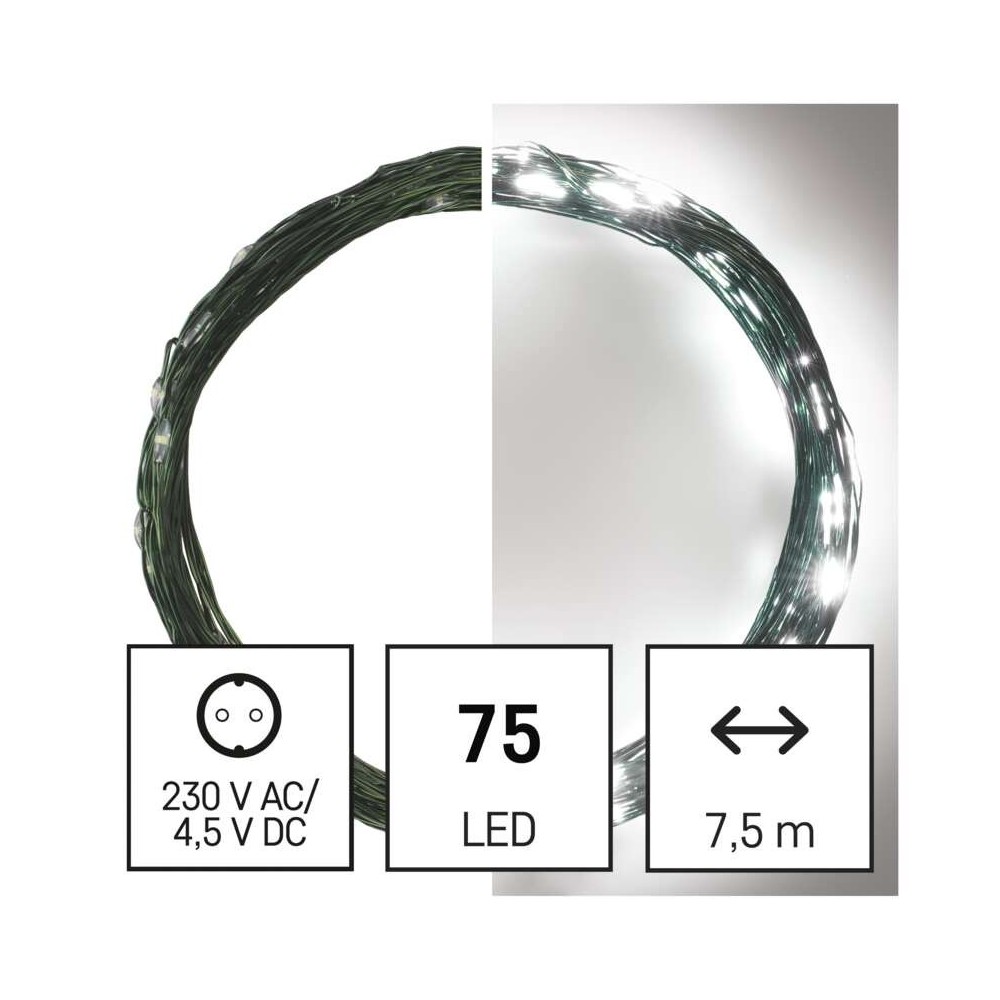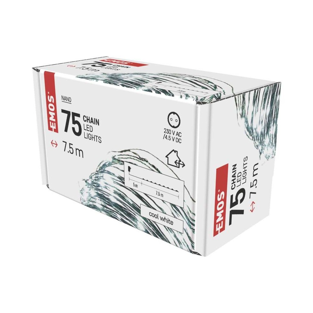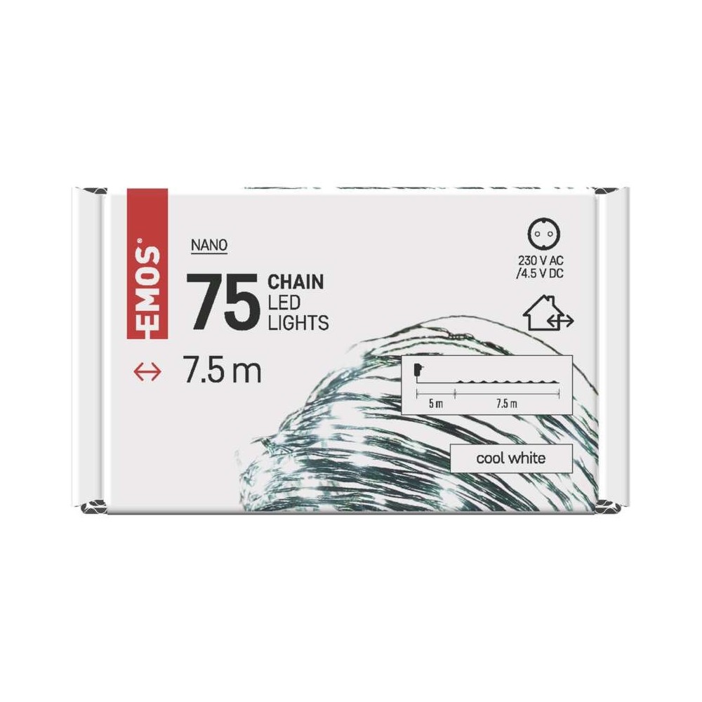 Catena LED Filo Verde Nano: 75 LED Freddi, Timer, 7,5m | EMOS D3AC04