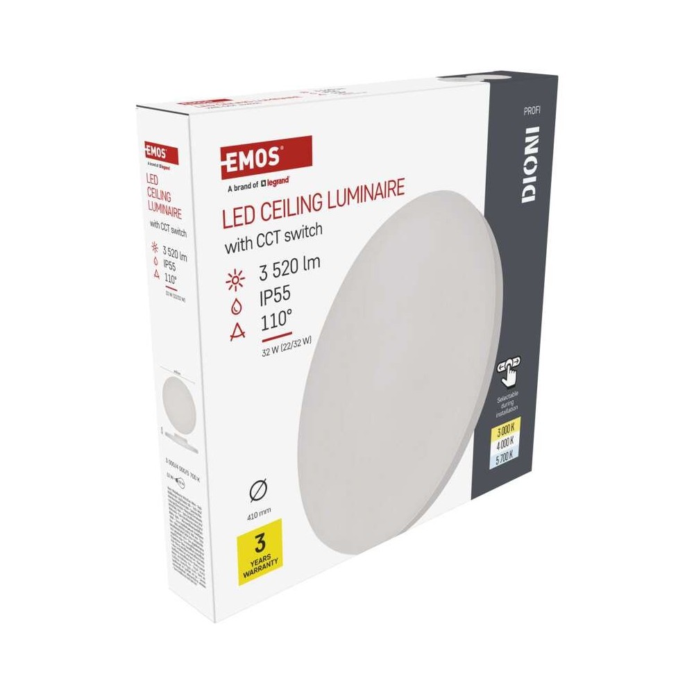 Plafoniera LED DIONI Bianca 32W/22W CCT 3000K 4000K 5700K IP55 Ø410mm | EMOS ZM7152