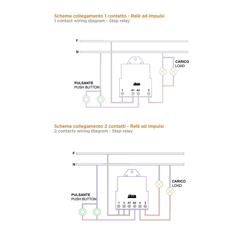 Grazie al sistema a 2 impulsi, il relè cambia stato ciclicamente con ogni impulso ricevuto, offrendo un controllo preciso dell'accensione e dello spegnimento di due circuiti contemporaneamente. È particolarmente utile per gestire luci e altri carichi elettrici in applicazioni domestiche o professionali.